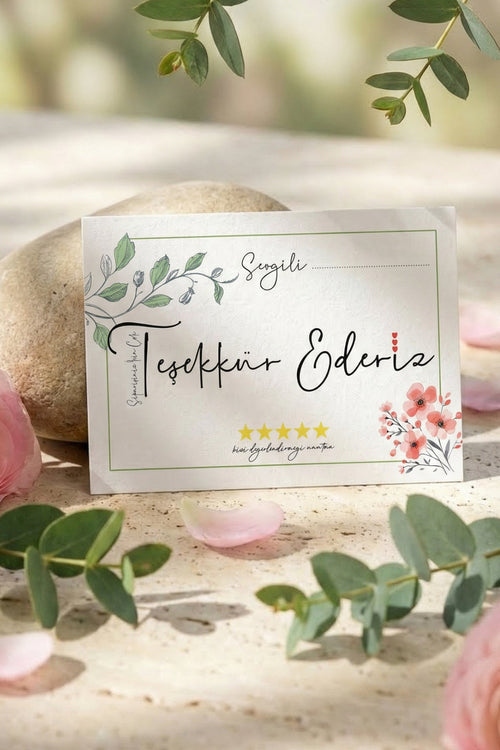 Rekbon Çiçek Temalı Notlu Teşekkür Kartı - E-ticaret Teşekkür Kartı